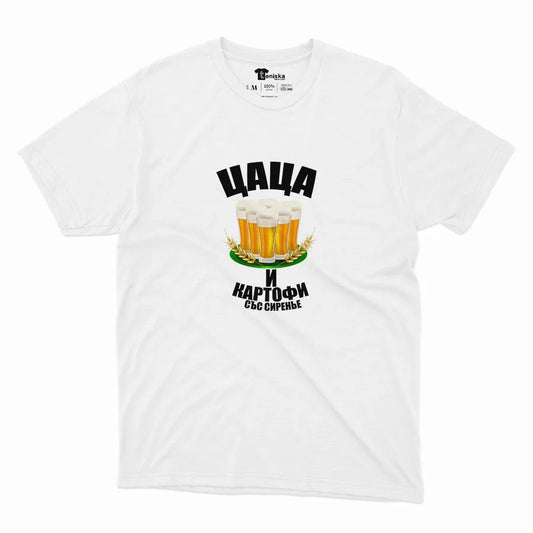 МЪЖКА ТЕНИСКА - ЦАЦА, БИРА И КАРТОФИ СЪС СИРАНЬЕ